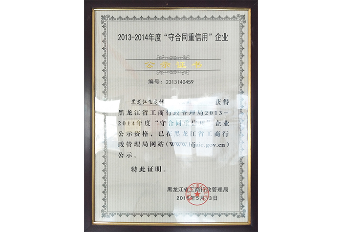 2013-2014年守合同重信用企業(yè)